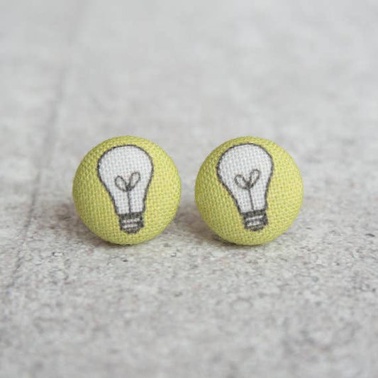 Bright Idea Lightbulb Fabric Button Earrings | Handmade in the US