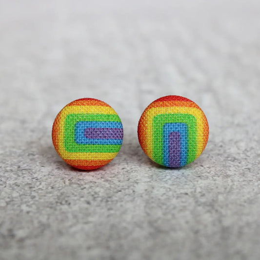 Retro Rainbow Fabric Button Earrings | Handmade in the US