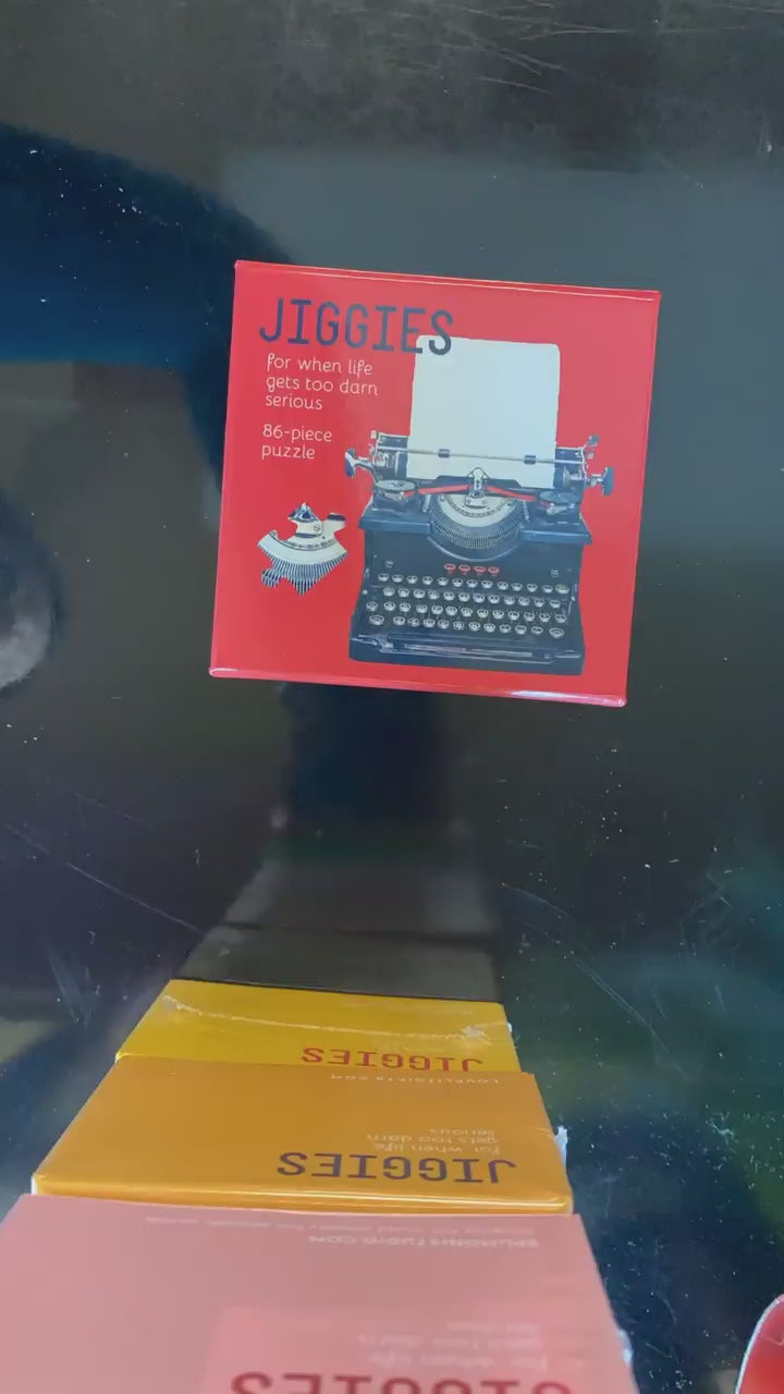 Here are some of my favorite new items! Check out this Lisa Simpson patch, this solid brass Japanese sword bookmark, this Gin Necklace, giant Chef's Knife Earrings, and this 86 piece puzzle shaped like a vintage typewriter!