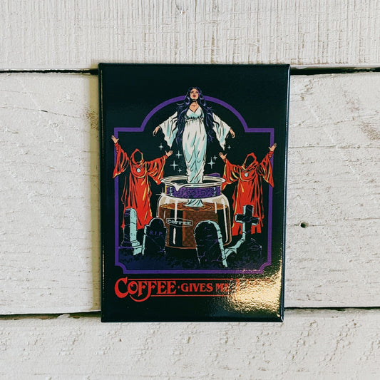 Coffee Gives Me Life Rectangular Magnet | '80s Children's Book Style Satirical Art by Steven Rhodes