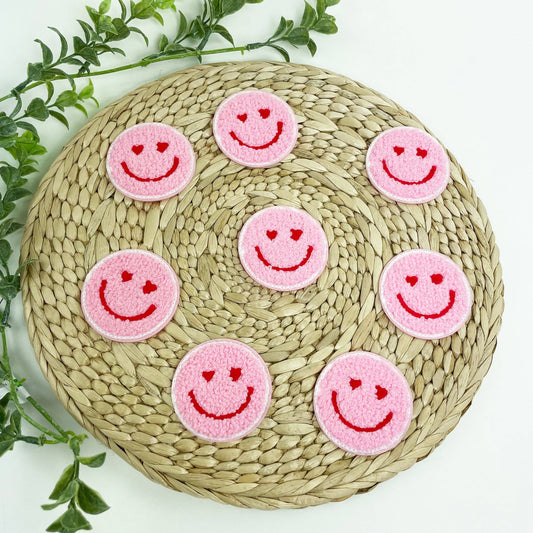 Pink Heart Eyes Smile Chenille Embroidered Iron-On Patches for Hats | Heat-seal Patches Accessories