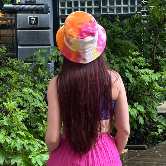 Tie-Dye Bucket Hat in Pink and Orange '90s Style Retro Gen Z Aesthetic
