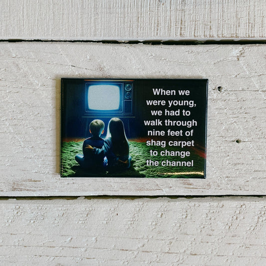 We Had To Walk Through Nine Feet Of Shag Carpet To Change The Channel Rectangular Magnet | Magnetic Surface Fridge Magnet Decor | 3" x 2"
