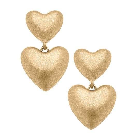 Margo Puffy Heart Statement Earrings in Worn Gold | Vintage Style Fashion Jewelry
