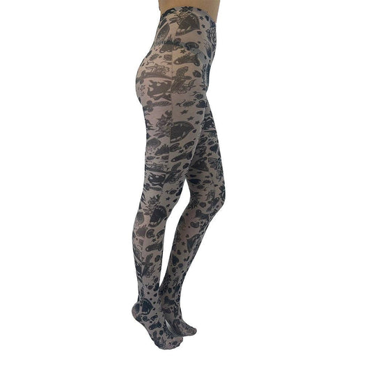 Grunge and Roses Printed Tights in Gray [Sizes Through US 14]