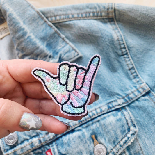Hang Loose Hand Tie Dye Patch | Embroidered Cool Greeting Good Vibes Hand Sign