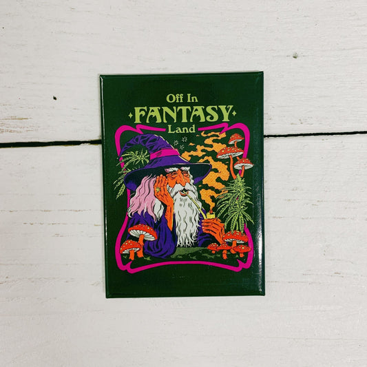 Off in Fantasy Land Rectangular Magnet | '80s Children's Book Style Satirical Art by Steven Rhodes