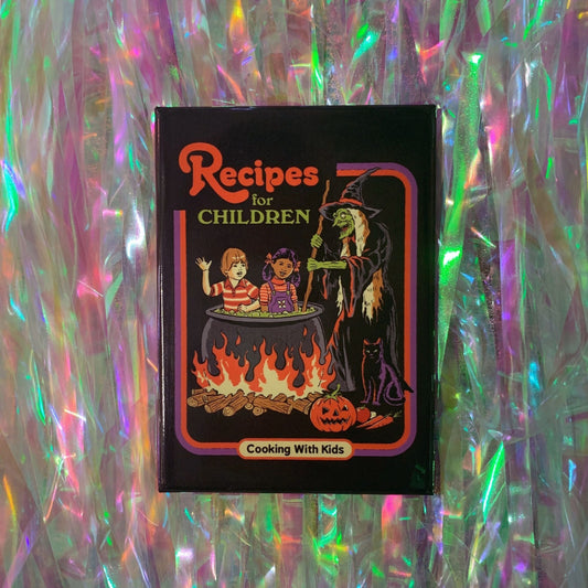 Recipes for Children...Cooking With Kids Rectangular Fridge Magnet | '80s Children's Book Style Satirical Art by Steven Rhodes