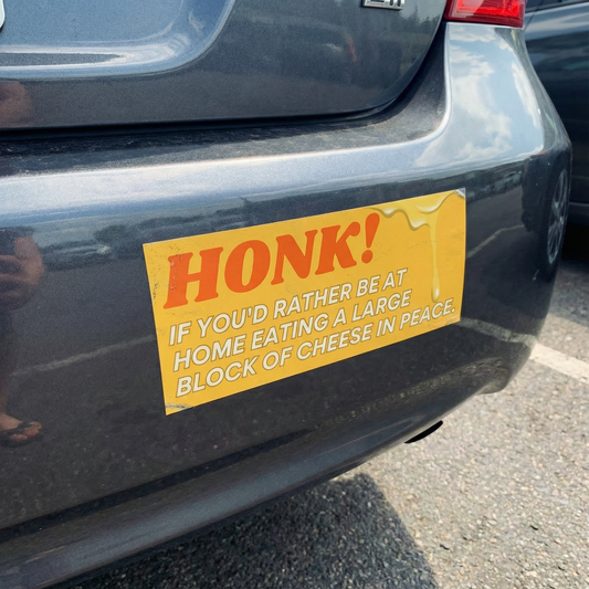 HONK If You'd Rather Be Eating Cheese Bumper Vinyl Stickers | Funny Rectangular Decal | 7.5" x 3.75"