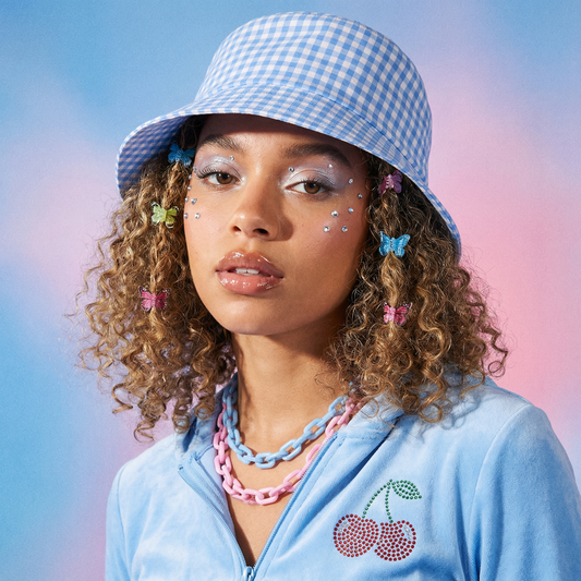 Blue Gingham Print Bucket Hat | 100% Cotton Classic Summer Sun Hat