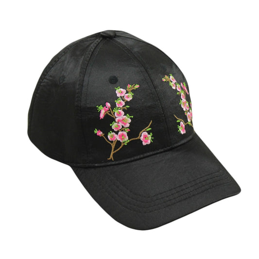 Chinese Blossom Embroidered Baseball Cap | Satin Polyester Adjustable Hat (Black, Grey, Red, White)
