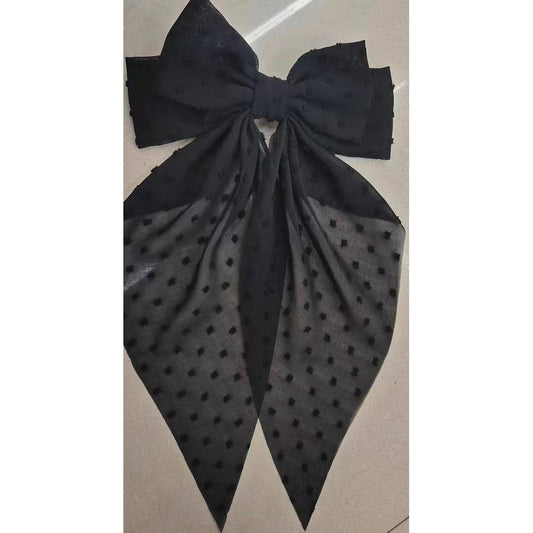 Swiss Dot Hair Bow | Black or Yellow Textured Bow Hair Accessory | Classic Polka Dot Hair Bow