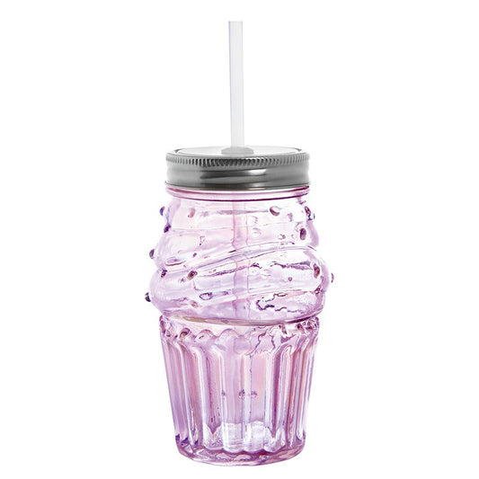 Pretty Pink Cupcake Sipper Glass | Wine or Cocktail Glass with Straw for Indoors or Outdoors