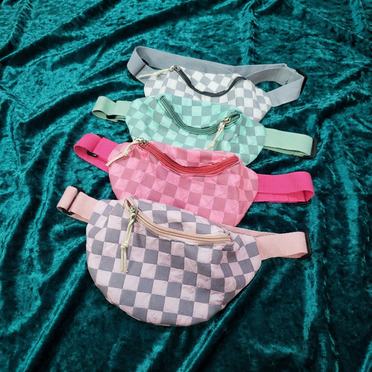 Checkered Belt Bag Fanny Pack Y2K Gen Z Aesthetic win 4 Colors [Violet, Pink, Green, Gray] 9.5" x 6"