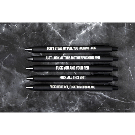 Sweary Fuck Pens Cussing Pen Gift Set - 5 Black Gel Pens Rife with Profanity