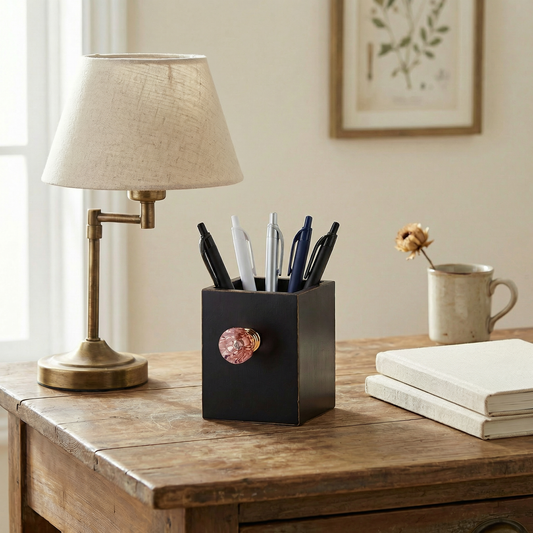 Crystal Knob Wooden Pen Holder in Black and Pink | Gift for Her