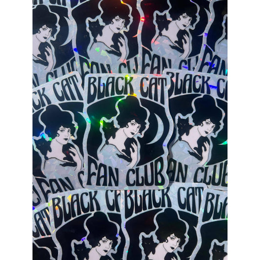 Black Cat Fan Club Holographic Vinyl Sticker | Waterproof Glossy Decal | 3"