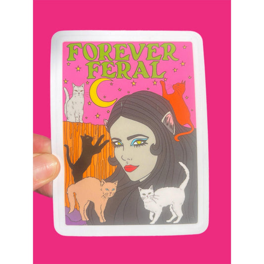 Forever Feral Waterproof Vinyl Sticker | Glossy Cats Retro Art Decal | 3"