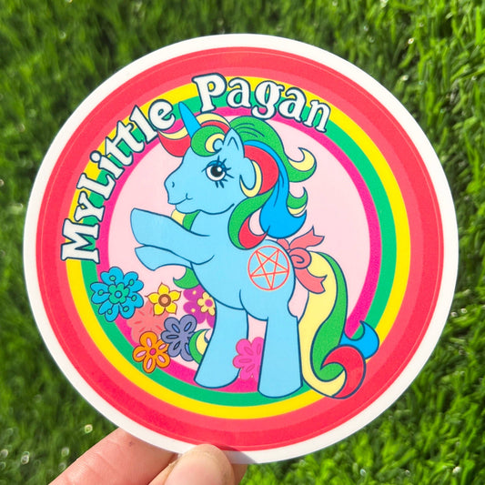 My Little Pagan Waterproof Glossy Vinyl Sticker | Funny Pony Gay Retro Round Decal | 3"