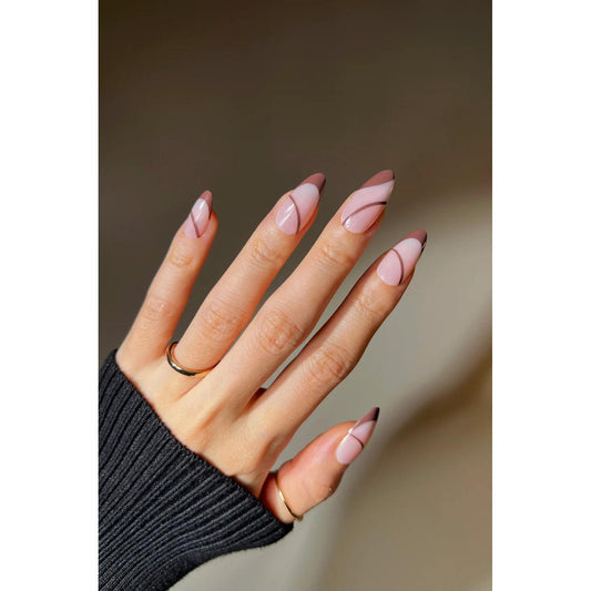 Brewed Serenade Press-On Nails | Coffee Brown Swirl Nails | Cozy & Reusable