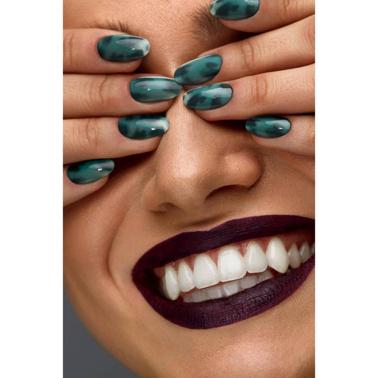 Emerald Amber Peacock Green Press-On Nails | Glossy Reusable & Non-Toxic