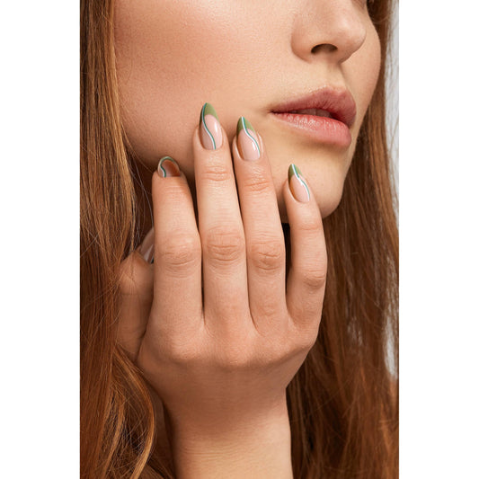 Verde Vogue Press-On Nails | Minimalist Green Accent Nails with Curved Lines | Reusable