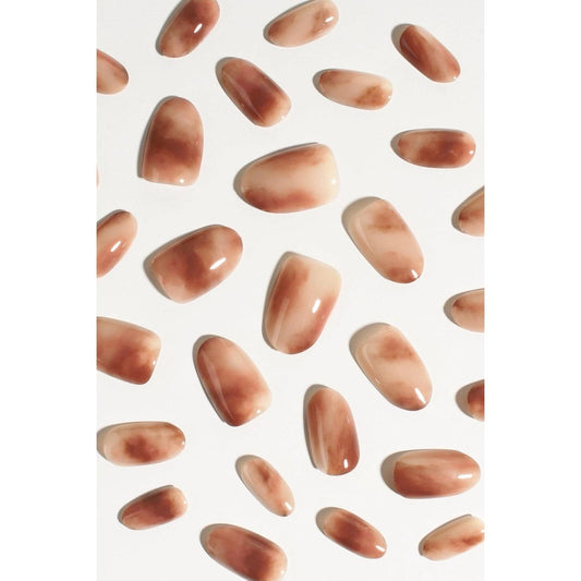 Smoked Mocha Press-On Nails – Soft Smoky Brown Swirl Nails | Short & Reusable