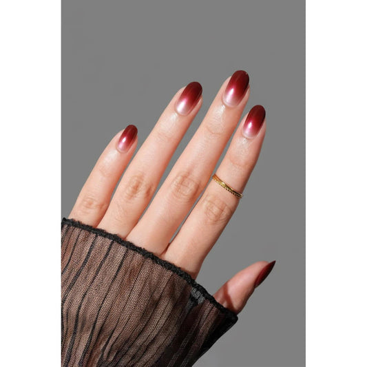 Wine Frost Press-On Nails | Burgundy Chrome Gradient Nails | Reusable & Non-Toxic