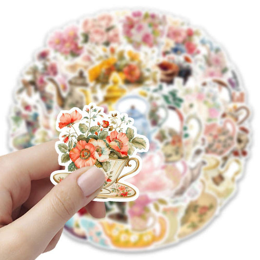 Vintage Floral Teapot & Teacup Stickers | 20 Mixed Victorian Style Decorative Scrapbook Stickers