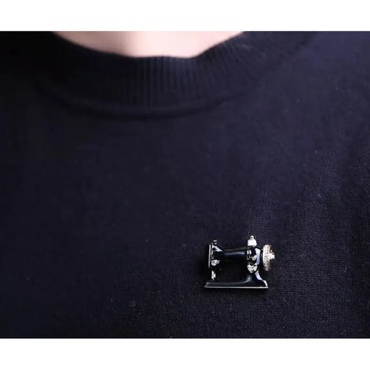 Vintage Sewing Machine Brooch | Black & Gold Enamel Pin with Rhinestones | Sewing & Craft Jewelry Gift