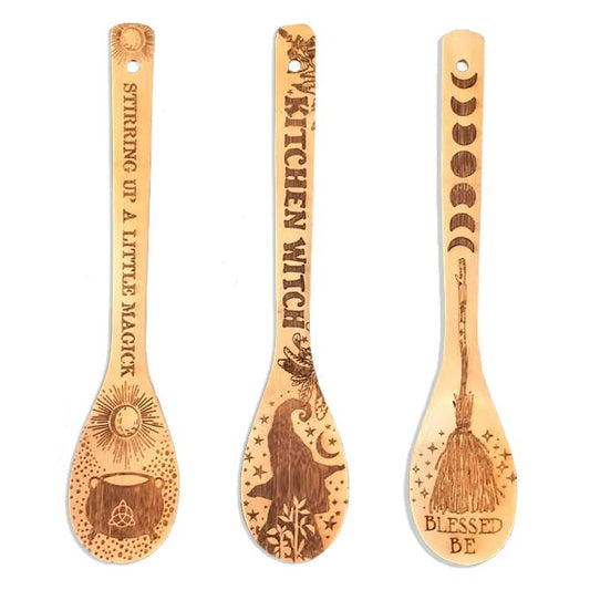 Witchy Bamboo Wooden Spoon Set | Halloween Kitchen Decor for Kitchen Witches