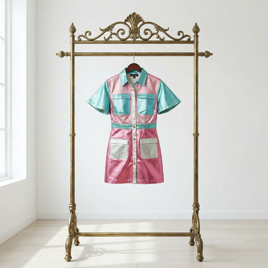 Metallic Color Block Utility Dress | Pinks Teal Blue Silver Patchwork [SM-L]
