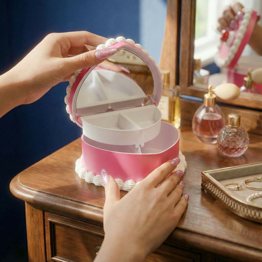 Cake Jewelry Box | Hand Decorated Small Heart Cake Storage Box in Blue or Pink