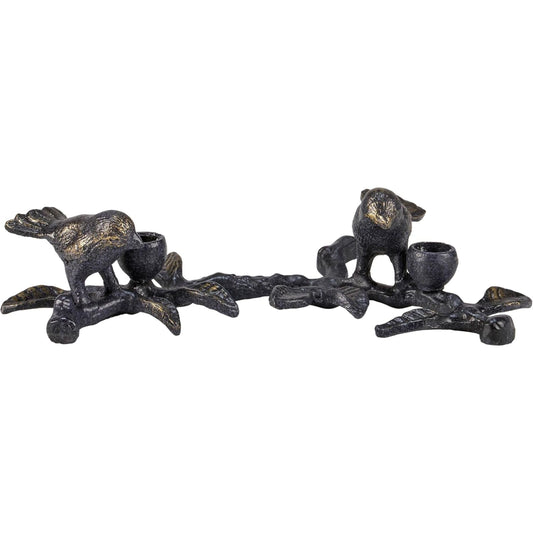 Rustic Birds On Limb Metal Candle Holder | Double Taper Candle Branch Decor