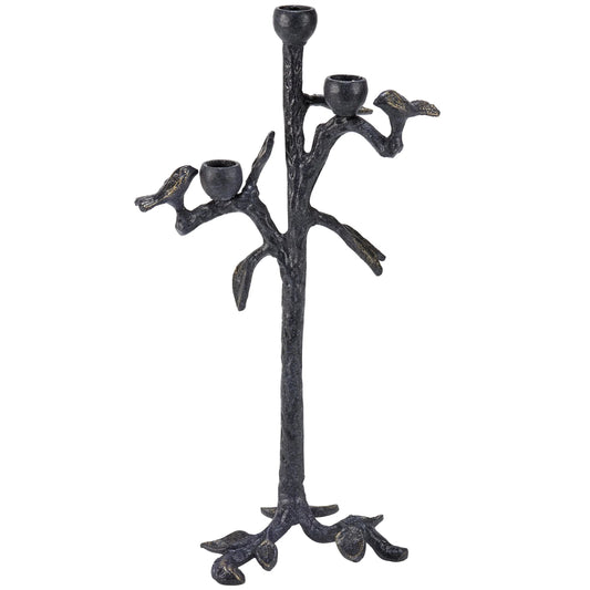 Bird Branch Metal Candle Holder for 3 Taper Candles | Rustic Tree & Bird Decor