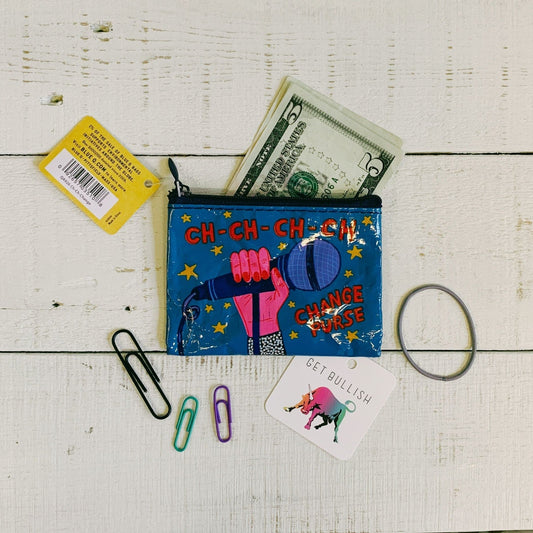 Ch-Ch-Ch-Ch Change Recycled Material Mini Zipper Pouch | Recycled Material | 3"h x 4"w | BlueQ at GetBullish