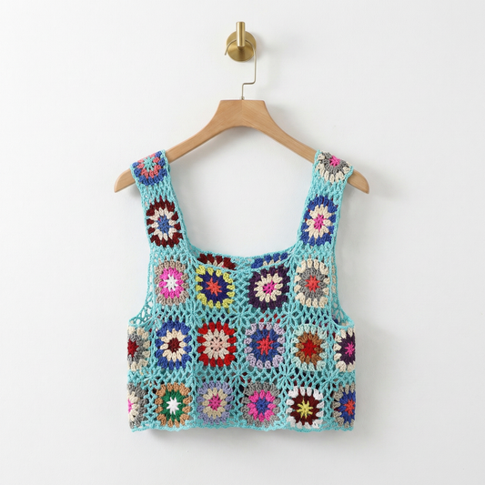 Crochet Crop Top in Blue or Purple | Novelty Knit Cropped Top | Boho Style Knit Tank