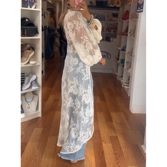 High-Low Bohemia Floral Sheer Lace Duster Blouse [Sizes S-L]
