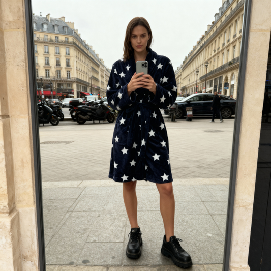 Kaylee Robe Navy & White Star Print | Giftable Luxurious Ultra Soft [Size L/XL Only]