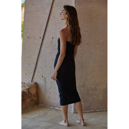 Knit Seamless Tube Neck Strapless Midi Dress in Black [Sizes SM-ML]