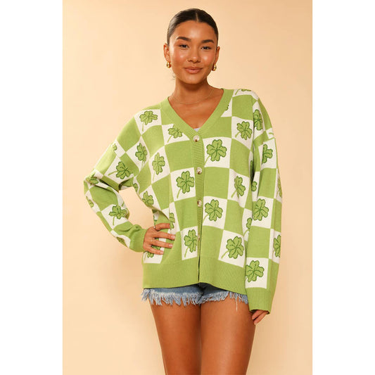 Shamrock Checkered Cardigan in Green and White [Available in SM-XL]