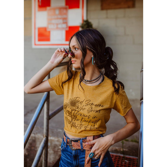 Find Someone Who Will Grow Flowers in the Darkest Parts of You Western Graphic Cropped T-Shirt [Sizes SM-XL]