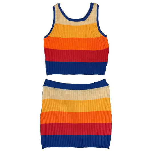 [Size XL Only] Rib Knit Set Skirt and Top | Orange and Blue Stripes