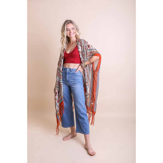Bohemian Diamond Tassel Kimono in Rust | Beach Swimming Cover-up