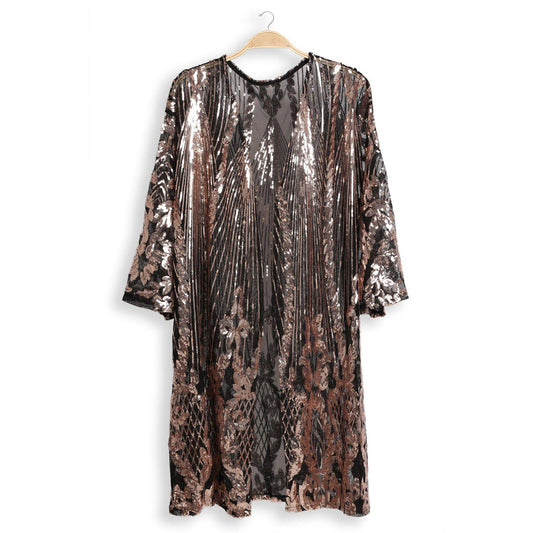 Brielle Sequin Kimono in Black | Sparkle Open Duster (One Size)