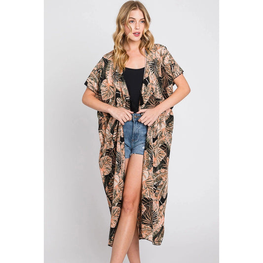 Eloise Tropical Leaves Drawstring Long Kimono