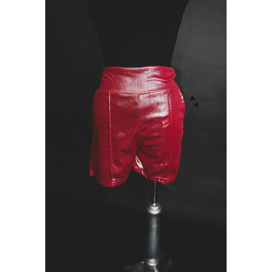 [Size M-3X] Shiny Short Firework in Red | Metallic Stretch Fabric