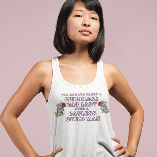 Childless Cat Lady Over Catless Child Man Women's Ideal Racerback Tank | Kamala JD Vance Election Meme | Vote 2024