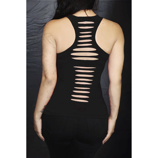 Live Fast Sexy Slashed Racerback Biker Tank in Goth Black [Sizes SM-2X]