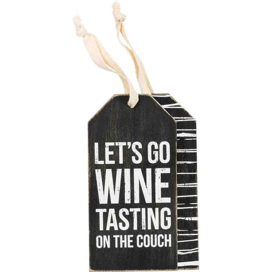 Let's Go Wine Tasting on the Couch Wooden Bottle Tag | Rustic